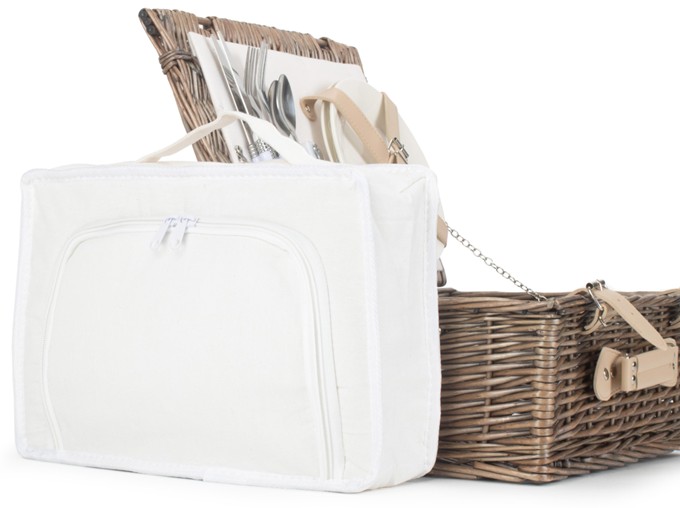 Includes China Plates, Stainless Steel Cutlery, Bottle Opener & Cooler Bag