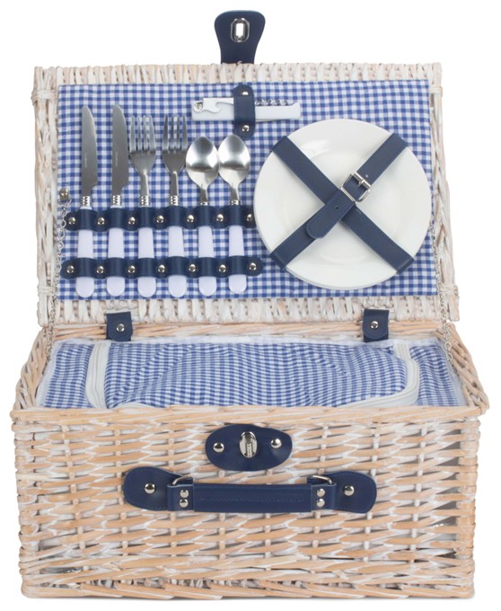 Blue & White Gingham 2 Person Fitted Hamper