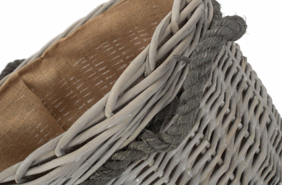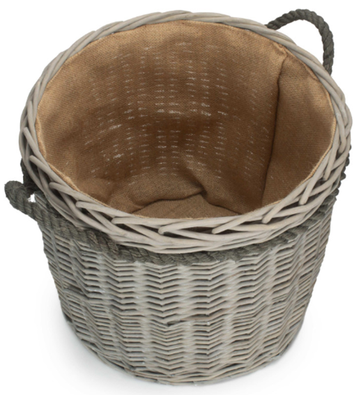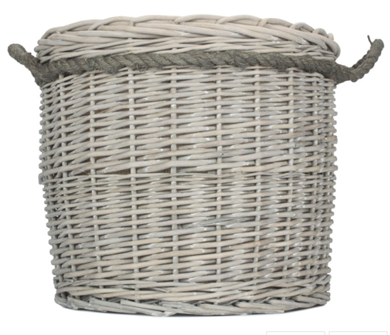 Devon Grey Wash Round BasketFull Grey Wash Finish - Willow - Rope Handles - Hessian LiningDiameter = 400mmHeight = 380mmPart Number: ST087/1
