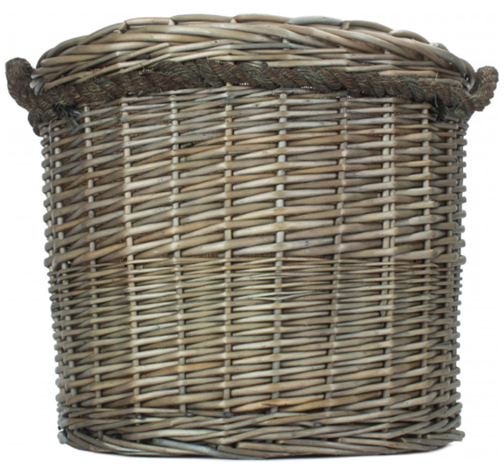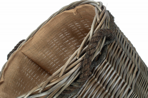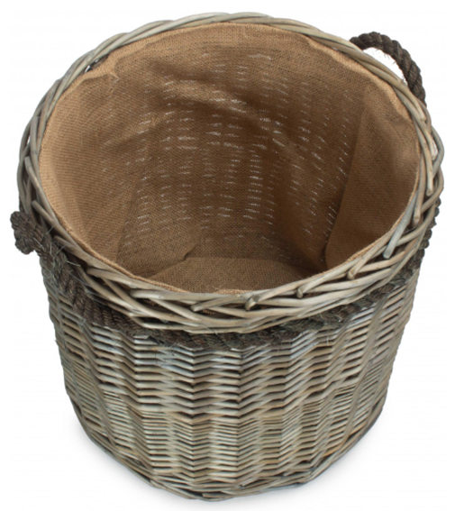 Essex Antique Wash Round BasketFull Antique Wash Finish - Willow - Rope Handles - Hessian LiningDiameter = 400mmHeight = 380mmPart Number: ST086/1