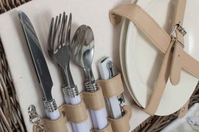Includes China Plates, Stainless Steel Cutlery, Bottle Opener & Cooler Bag