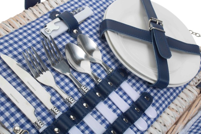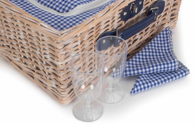 Blue & White Gingham 2 Person Fitted Hamper