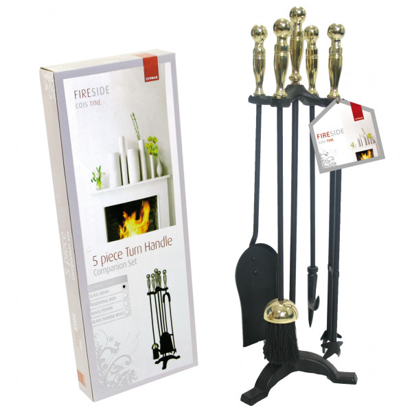 Home Stove & Home Accessories Stove Tools Deville 25" Turn Handle Companion Set - BRASS