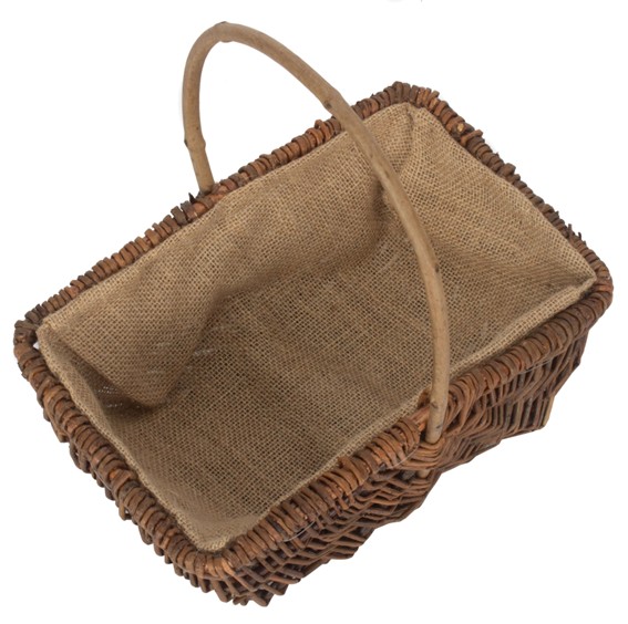 Medium Rectangular Unpeeled Willow Garden Trug With Hessian Lining