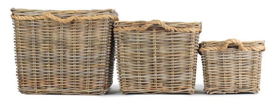Set of 3 Square Tapered Rope Handled Rattan Planter With Plastic Lining