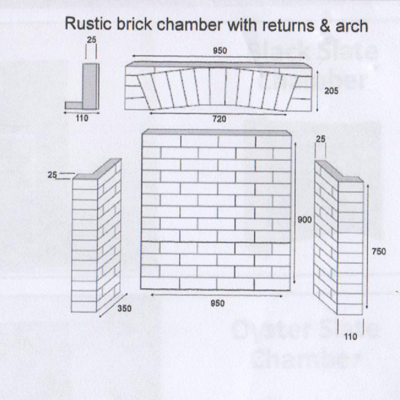 Rustic Brick Fireplace Chamber with Top Arch and ReturnsBack : 890mm x 920mmSides : 450mm x 9200mmArch: 950mm x 205mmPart Number: 0250025DUE TO THE WEIGHT AND SIZE OF THIS ITEM IT WILL BE DELIVERED ON A SMALL PALLET